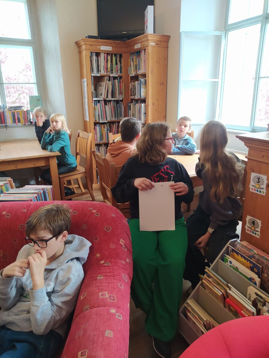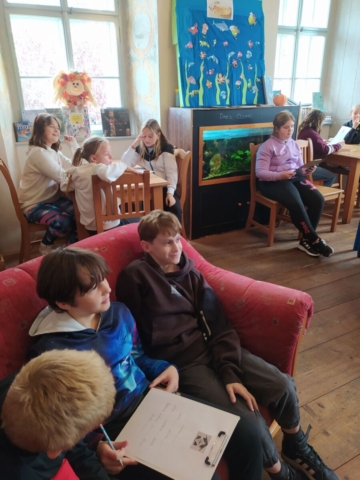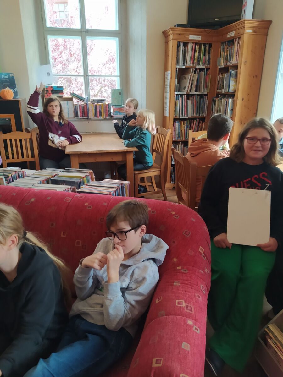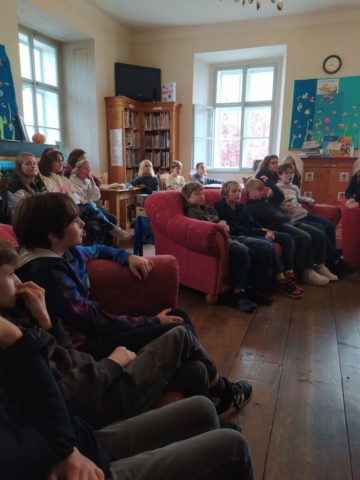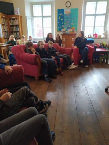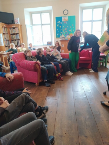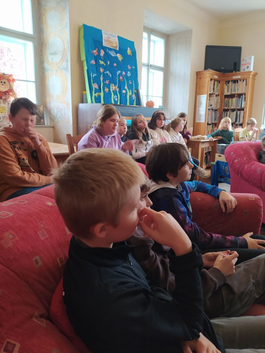V říjnu se 5.A vydala do knihovny na čtenářskou dílnu. Téma se zdálo lehké – čas, ale jak se ukázalo, určování hodin je více než obtížné pro nejednoho žáka. Čas strávený v knihovně však utekl velmi rychle a přes nedostatky v dovednostech určování hodin se všichni dobře bavili.