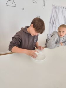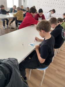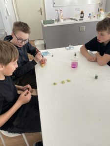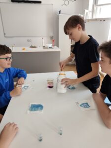 Dne 7. dubna se třídy 6.A a 6.B vydaly do pražského Didaktikonu na program Barevná chemie. Žáci si vyzkoušeli zajímavé pokusy se změnami barev a zábavnou formou se seznámili se základy chemických reakcí. Nechyběla ani pořádná dávka nadšení – a při některých pokusech to vypadalo, že učitelky skoro „hoří“ stejně jako chemické reakce.