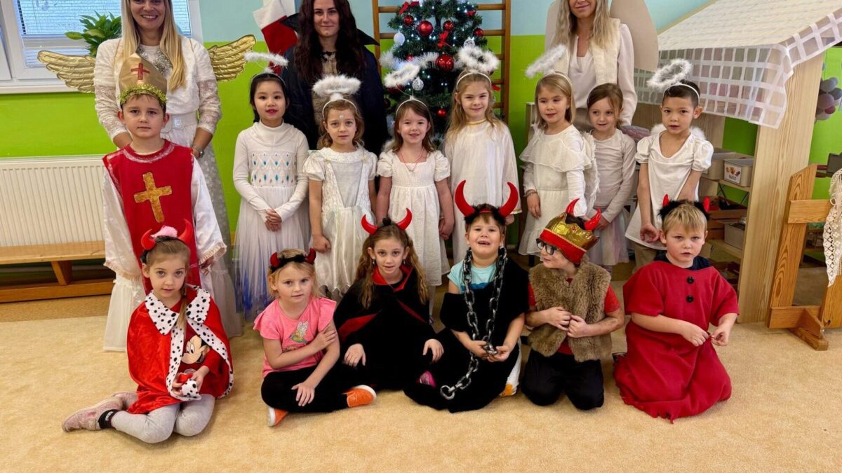 6. prosince jsme se převlékli do čertích a andělských převleků. Ve třídě nás čekalo zábavné vození na obláčku a v čertím kotlíku. U stolečku jsme plnili jeden těžký čertí úkol, který jsme všichni skvěle zvládli. Po tanečkách jsme zaslechli čerta u nás za dveřmi, když jsme ale otevřeli dveře, žádný čert tam nebyl. Našli jsme tam balíčky a dopis od Mikuláše, čerta a anděla. Protože nám dopis a nadílka udělaly velkou radost, rozhodli jsme se jim na jejich dopis odpovědět. Dnes byla i velká sněhová nadílka, proto jsme se moc těšili, až si zařádíme v čerstvě napadeném sněhu a postavíme prvního sněhuláka. Fotogalerie