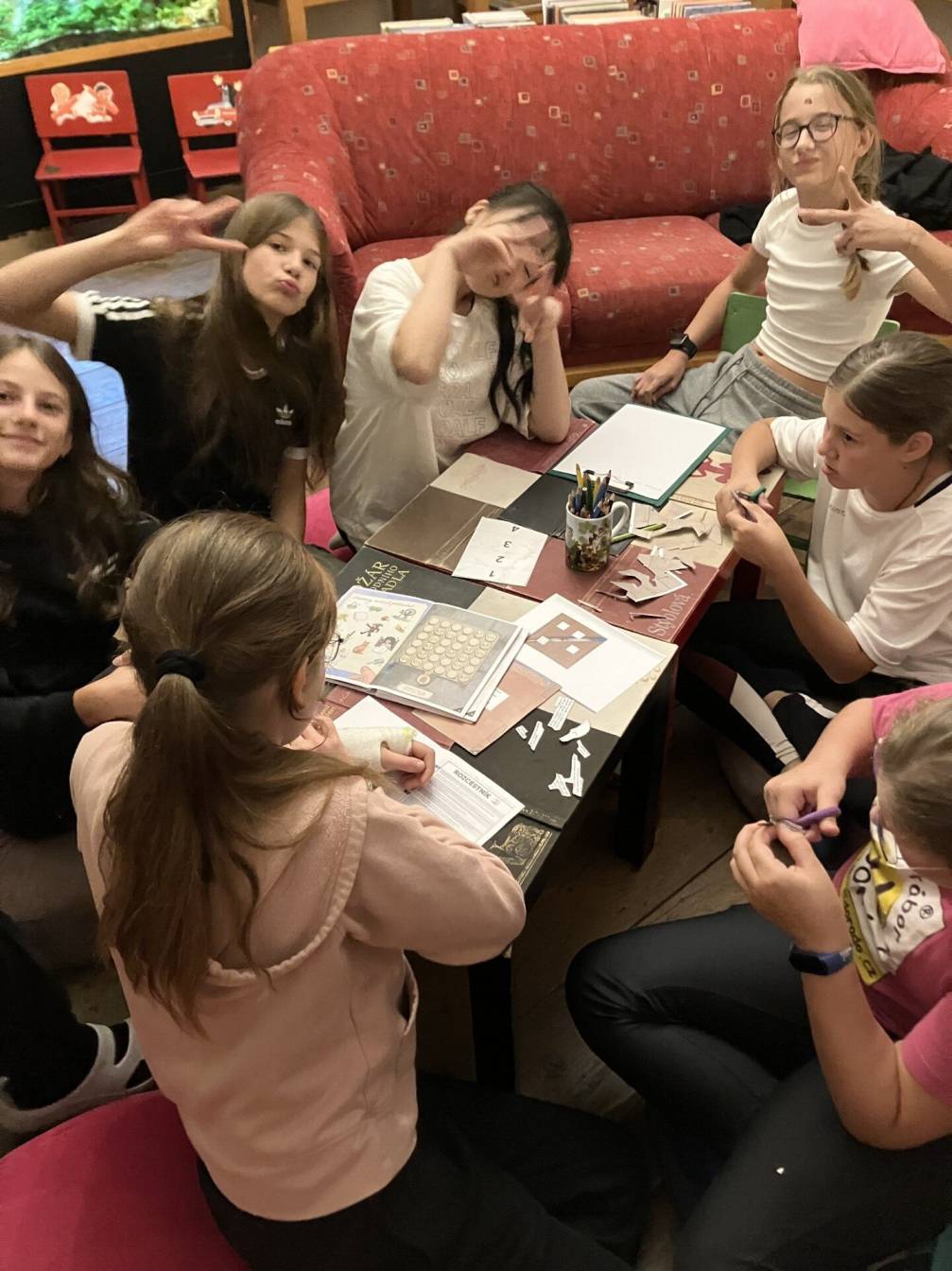 Tradiční čtenářská soutěž pro žáky 2. stupně naší školy Kamarádi knihovny má svého vítěze. V loňském školním roce se jím stali žáci 7.B. Mladí čtenáři byli motivováni lákavou cenou – strávit noc v knihovně a zahrát si napínavou únikovou hru. K jejímu vyřešení jsme museli zapátrat v paměti a připomenout si pohádky bratří Grimmů. Některé šifry nás pěkně potrápily. Noční Bousov poskytl působivé kulisy pro vznik oživlých obrazů. Zábavný večer (a noc) jsme zakončili pantomimickými ukázkami z pohádek, které nás naladily na nocování mezi knihami. Děkujeme paní knihovnici Olince Třískové za přípravu celé akce a vytvoření pohodové atmosféry.