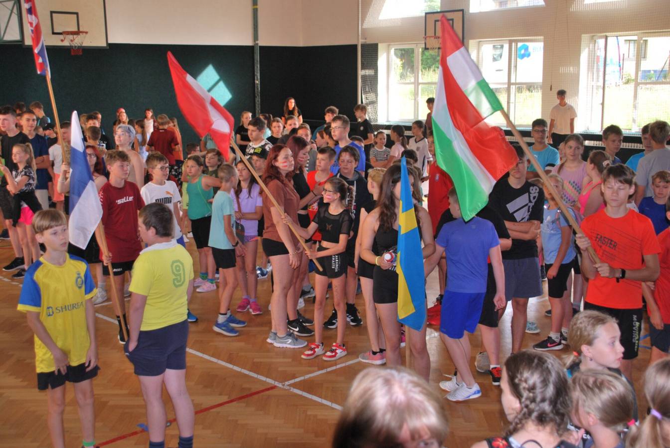 Dnes, tedy 27.6.2024, se 14 týmů postavilo na startovní značky k závěrečnému (nejen) sportovnímu klání. Jak je již tradicí, žáci byli rozděleni do týmů pod vlajky jednotlivých zemí a utkali se ve 14 různých disciplínách.