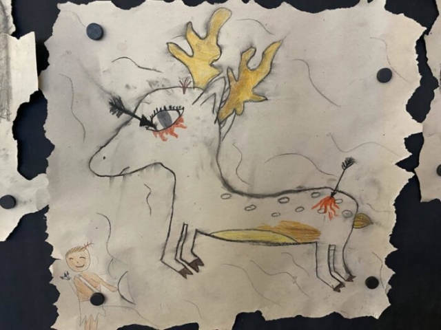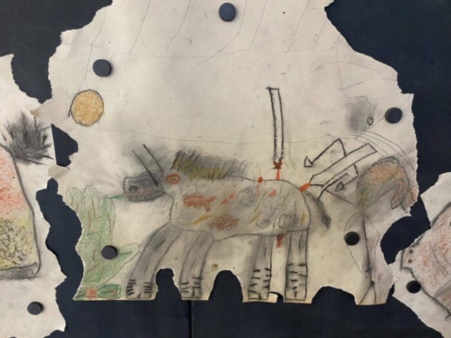 Minulý týden jsme si se čtvrťáky prohlédli obrazy z jeskyní Altamira a Lascaux a děti si poté vyzkoušely vytvořit vlastní jeskynní malby. Jak se jim pravěcí býci, jeleni, divočáci a vlci povedli se můžete podívat v naší galerii.  http://