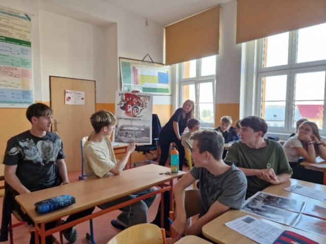 Letošním tématem je 35. výročí sametové revoluce. V naší škole už je tradicí, že jsme promítání dokumentárních filmů pojali jako celodenní projekt. V úvodu se žáci rozpomínají na významné časové mezníky našich dějin, poté pracujeme s pojmy jako demokracie, totalita, bezpráví… K pochopení problému využíváme i krátké dokumentární filmy z pořadu Slavné dny internetové televize Stream.cz. Po ujasnění faktů jsme si pustili dokument Olgy Sommerové a Petra Nikolaeva Ztracená duše národa. Část nazvaná Ztráta slušnosti je výpovědí žen, které byly nesmyslně vězněny (a týrány!), a přesto je nic nezlomilo, ani v jejich víře, ani v životě. Dojemné příběhy lidské záště, nenávisti, surovosti a nespravedlnosti děti velmi zasáhly. Někteří žáci byli ochotní mluvit o svých pocitech a neskrývali své pobouření. Podobně tomu bylo i v dokumentu Heleny Třeštíkové Hitler, Stalin a já, v němž paní Heda Blochová vzpomíná na léta strávená v koncentračním táboře v Osvětimi, na situaci po válce a po roce 1948, na odsouzení jejího manžela Rudolfa Margolia ve vykonstruovaném procesu v roce 1952 a jeho následné popravě či na emigraci v roce 1968. Tento dokument ukazuje na životním příběhu paní Blochové zrůdnost obou systémů – nacismu i komunismu. Posledním zhlédnutým dokumentem byl film Karla Strachoty, ředitele a zakladatele vzdělávacího programu Jeden svět na školách organizace Člověk v tísni. Ve snímku 1989: Chceme dýchat mapuje několik let před sametovou revolucí v Teplicích očima mladých lidí. Dobové záběry z různých akcí tak podávají obrázek tehdejší doby.