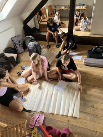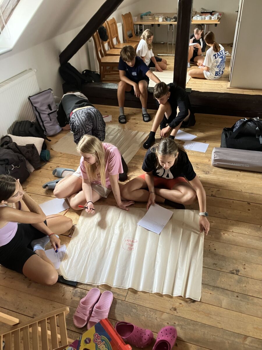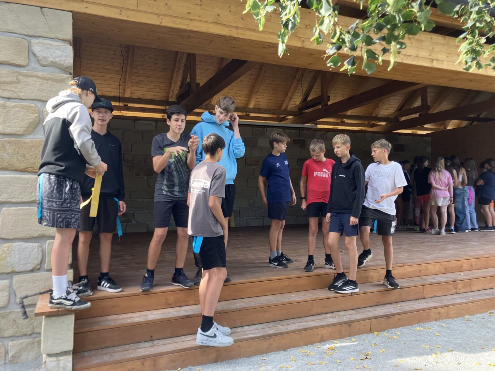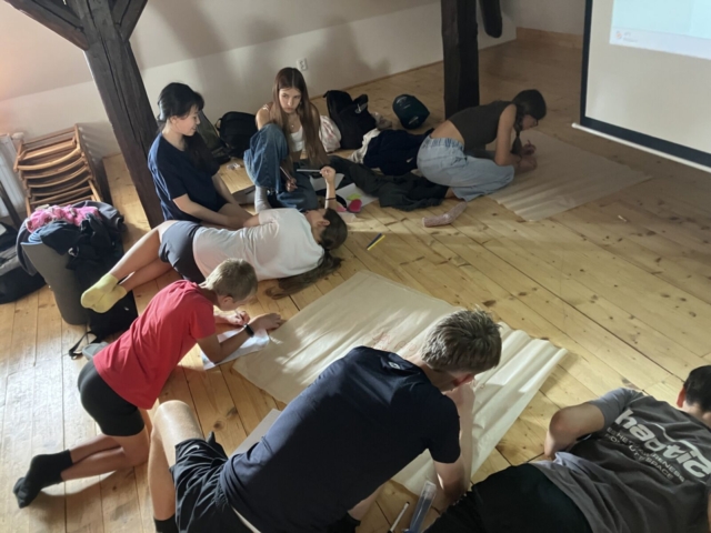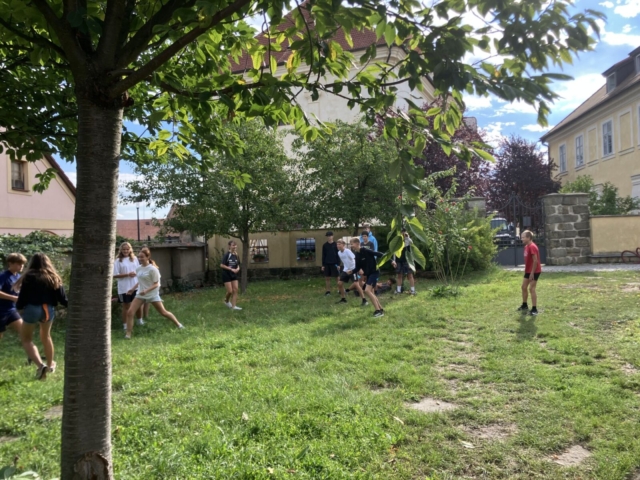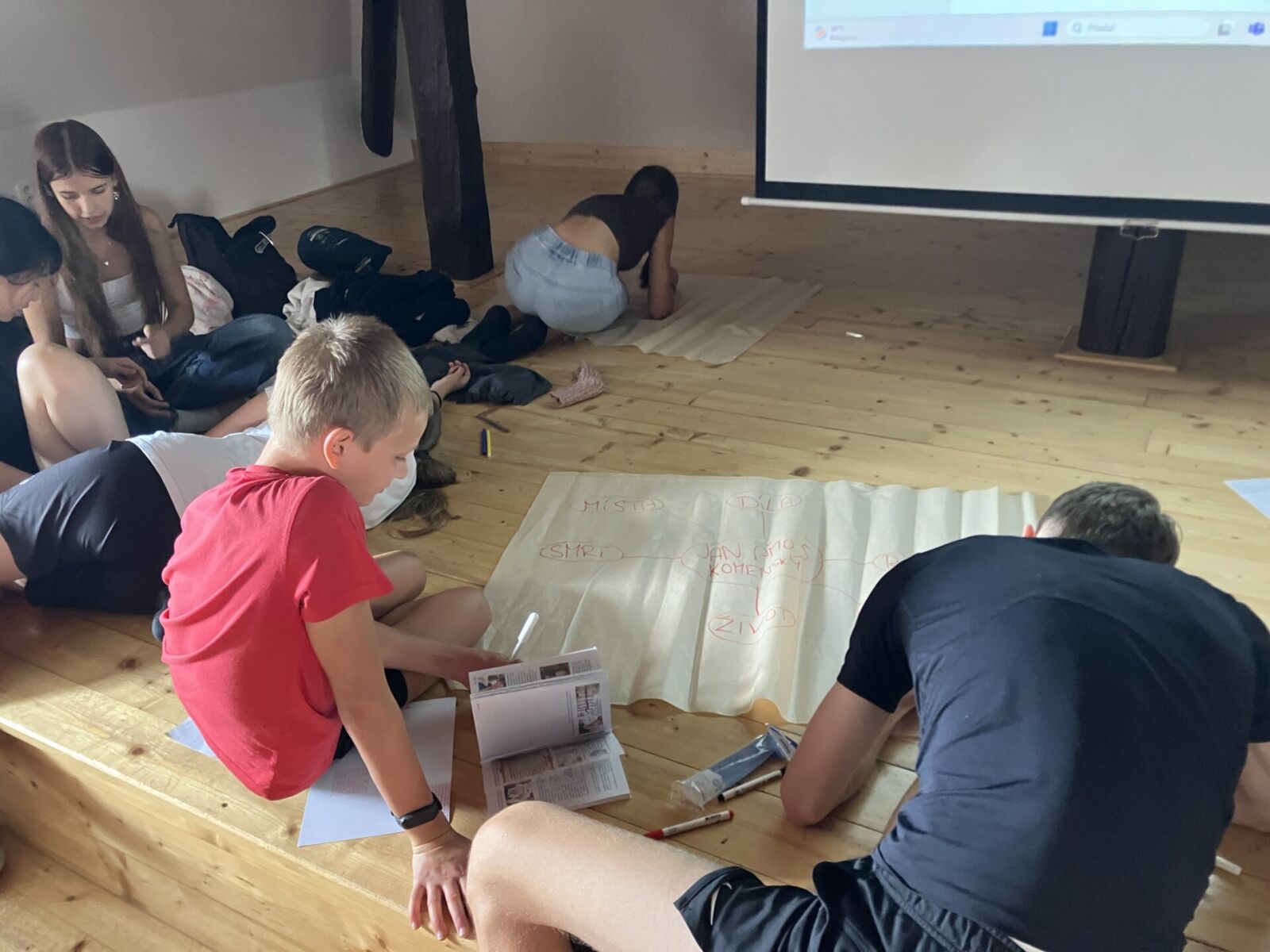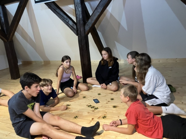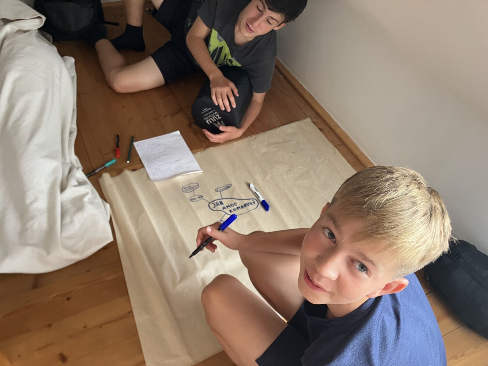 9 září, 2025Na čtvrteční nocování v knihovně navázali žáci 8.B projektovým dnem, jehož téma bylo zpočátku zahaleno tajemstvím. Pomohly ho odhalit indicie, které nashromáždili žáci ve středu v Mladé Boleslavi cestou z hradu na nádraží. Postupným dešifrováním se dostali k postavě Jana Amose Komenského. Aby pochopili dobu, ve které žil, zdramatizovali události stavovského povstání vedoucí k bitvě na Bílé hoře. Nakonec došlo i na samotnou bitvu a poražení zakusili pocity frustrace, které bezpochyby zažívali i čeští stavové. Po osvěžení pohybem jsme se přesunuli zpět do knihovny a po zhlédnutí krátkých videí sestavili žáci ve skupinkách myšlenkové mapy. Po vyřešení labyrintu (..světa a ráj srdce) jsme shrnuli všechny nově nabyté vědomosti a vydali jsme se domů dohnat spánkový deficit.