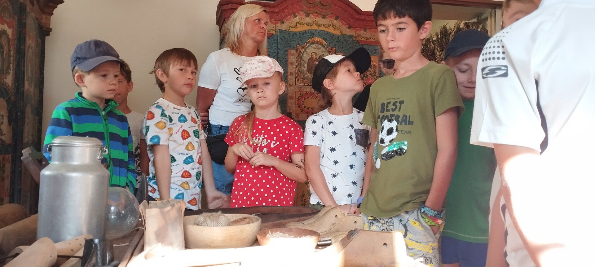 V prvním školním týdnu děti z 2.A absolvovaly pěší výlet na Rohatsko společně se třídami 3.A a 3.B, jely vlakem do Sobotky s dětmi ze 2. B a navštívily Muzeum Almárium, kde si prohlédly historické nástroje, které používali ševci nebo si vyzkoušely sedět ve školní lavici z první poloviny 20. století. V místní cukrárně ochutnaly sladké dobrůtky. S paní Bartkovou podnikly vlastivědnou vycházku spojenou s ekologickou výchovou po NS Městem Dolním Bousovem. Děti procházely místa důležitá z hlediska historie, přírody i společenského dění ve městě. V pátek děti započaly první lekci plaveckého výcviku v plaveckém areálu v Jičíně. Byl to krásný týden plný zážitků pro všechny.
