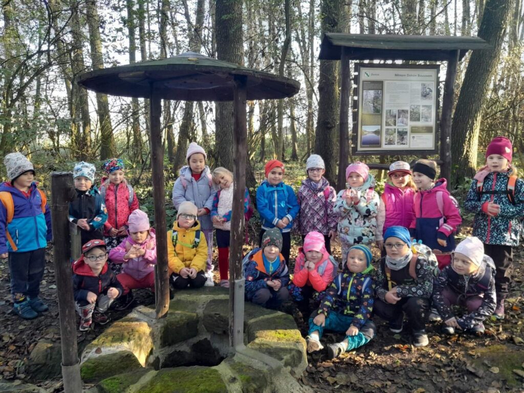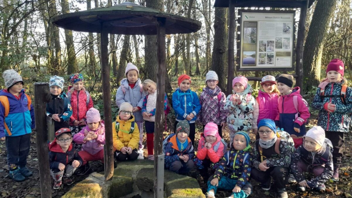 7. října jsme se vypravili vyčistit a symbolicky uzamknout studánku „Žbelíček“. Pozorovali a zkoumali jsme prostředí lesa a prostředí u rybníka. Svačili jsme u zvoničky, kde jsme také skákali do dálky dle délky skoku různých zvířátek. Poznávali jsme okolí závodiště Rachvala. Cestou zpět jsme navštívili zahradu jednoho z našich kamarádů ze třídy, kde jsme měli ukázku domácích zvířátek. Fotogalerie