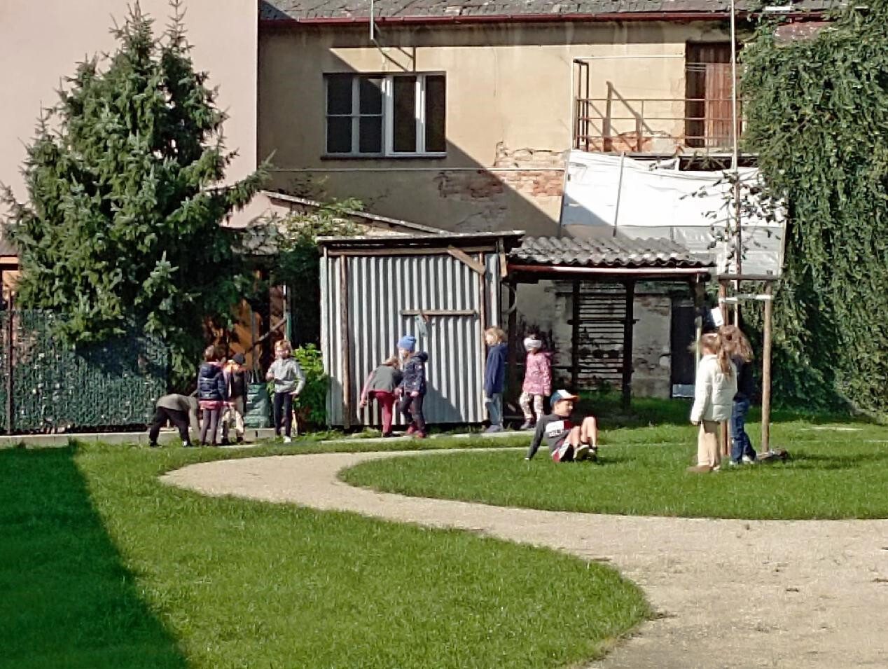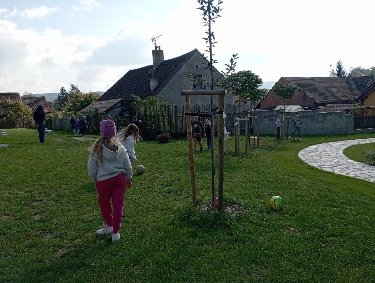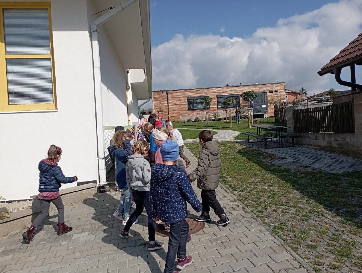 Děti se měly pohybovat po vyznačených šipkách a plnit úkoly, které byly rozmístěné po celé školní zahradě a školním dvoře. Celkem splnily 45 úkolů.