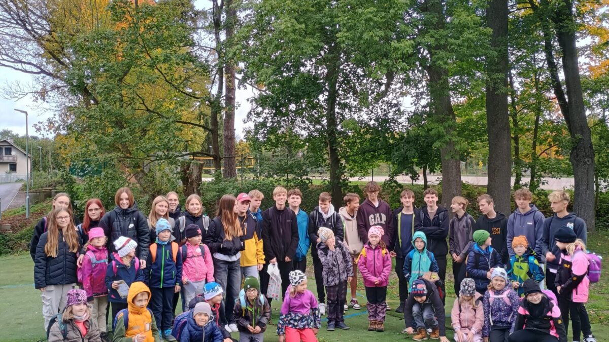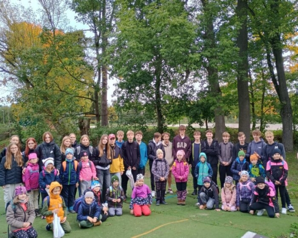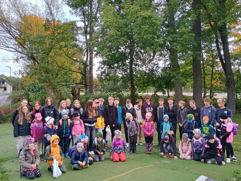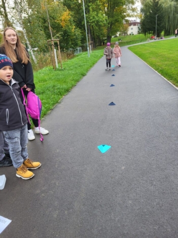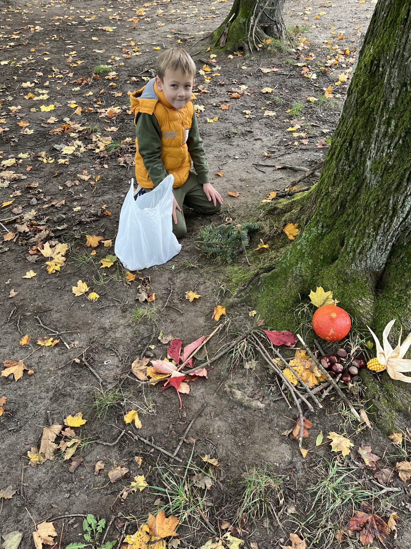 Také žáci 9.B a 1.B se sešli, aby pomohli skřítkovi Podzimníčkovi – např. společně postavili pelíšky pro zvířátka, našli věci, které do přírody nepatří, a uklidili je do správných kontejnerů. Příjemně strávené dopoledne si všichni moc užili a už se těší na další společné aktivity.