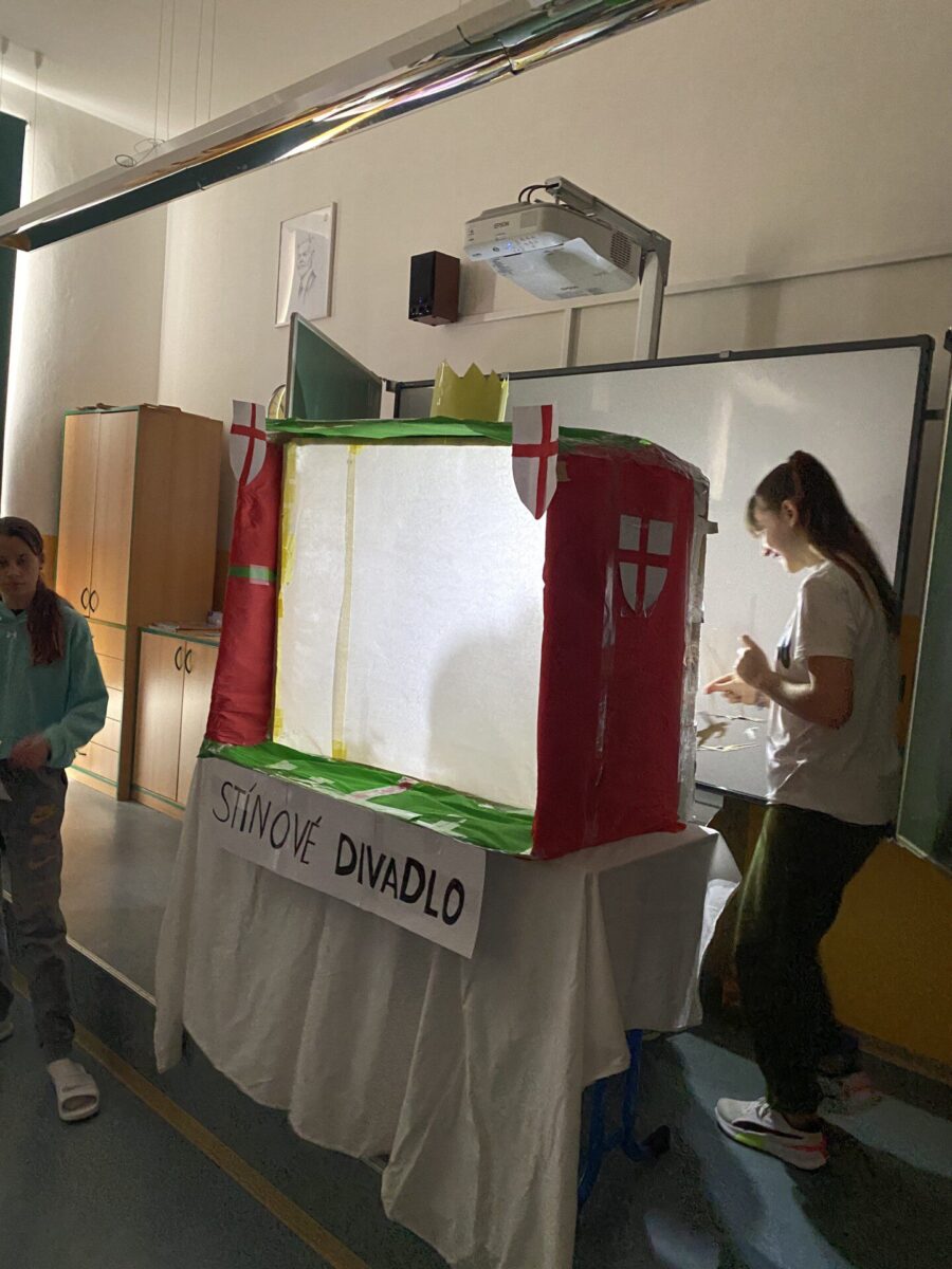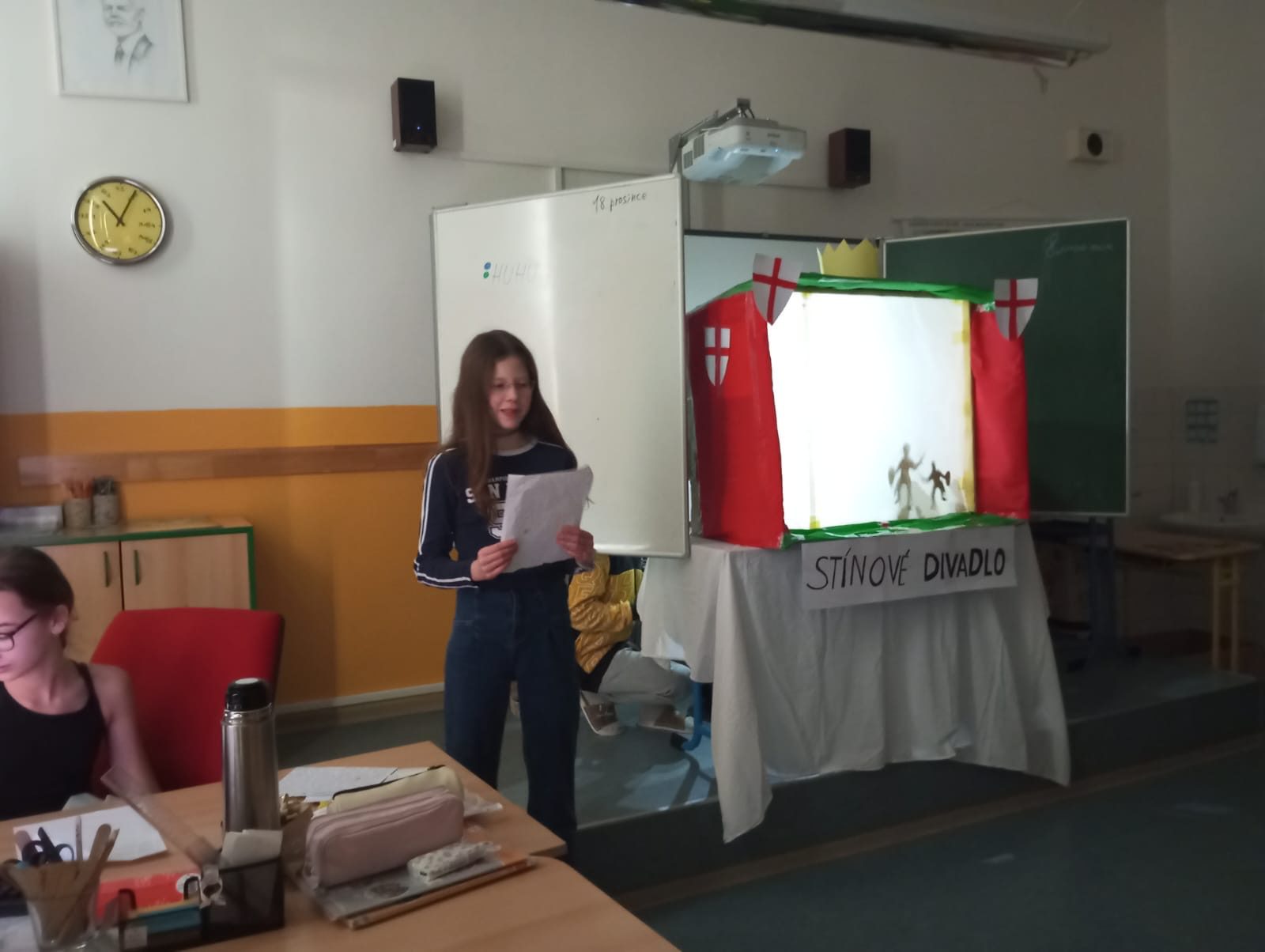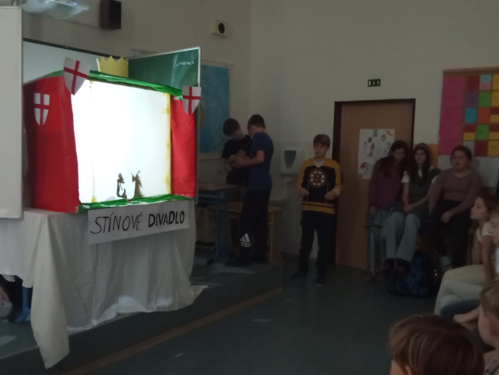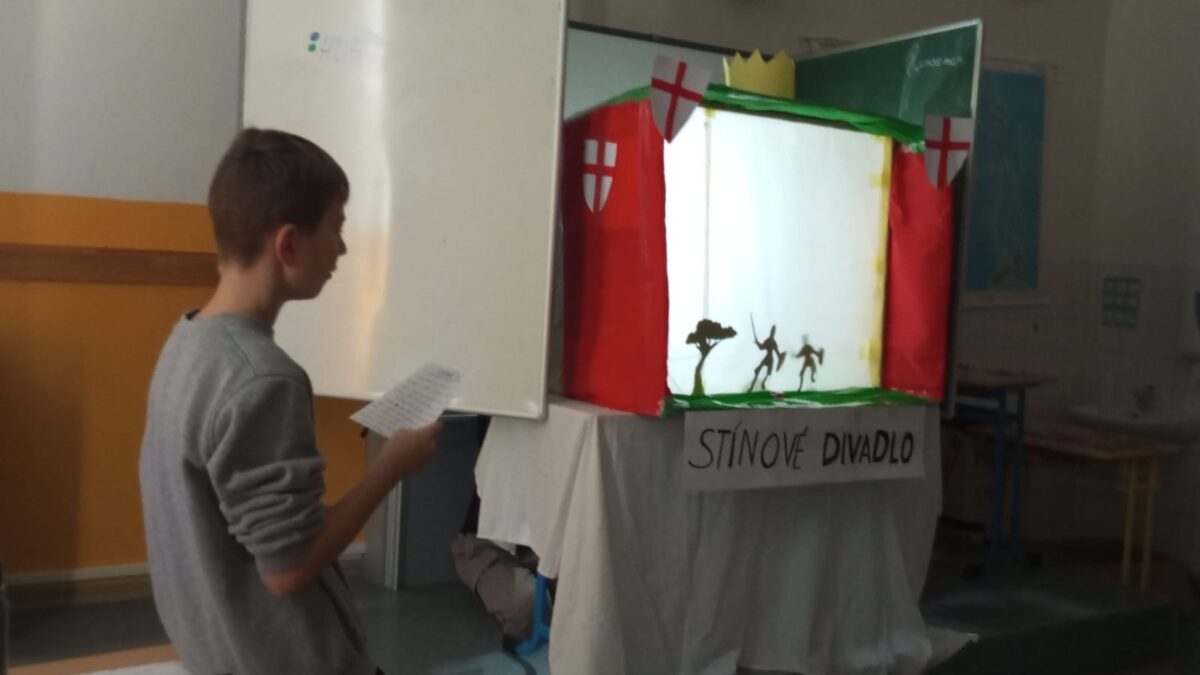 26 února, 2025Příběh o králi Artušovi ze staré Anglie ztvárnili žáci 7.B netradičním způsobem – sehráli stínové divadlo. Samotné prezentaci předcházela časově náročná týmová spolupráce – příprava scénáře, výběr loutek, sestavení scény, technické řešení osvětlení, doprovodné ozvučení příběhu. Příprava postaviček probíhala v hodinách informatiky ve speciálním programu a vyžadovala od žáků preciznost a trpělivost. O samotné zhotovení se postaral nový stroj Thundercut laser 40W, který dokáže vyříznout jakýkoli požadovaný tvar. Samotné provedení příběhu vyžadovalo spolupráci všech účastníků projektu. Poučný příběh zhlédly děti obou stupňů naší školy.