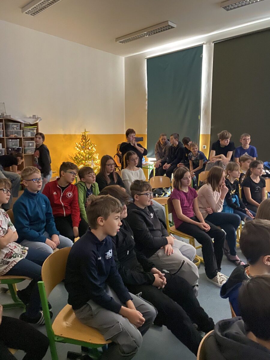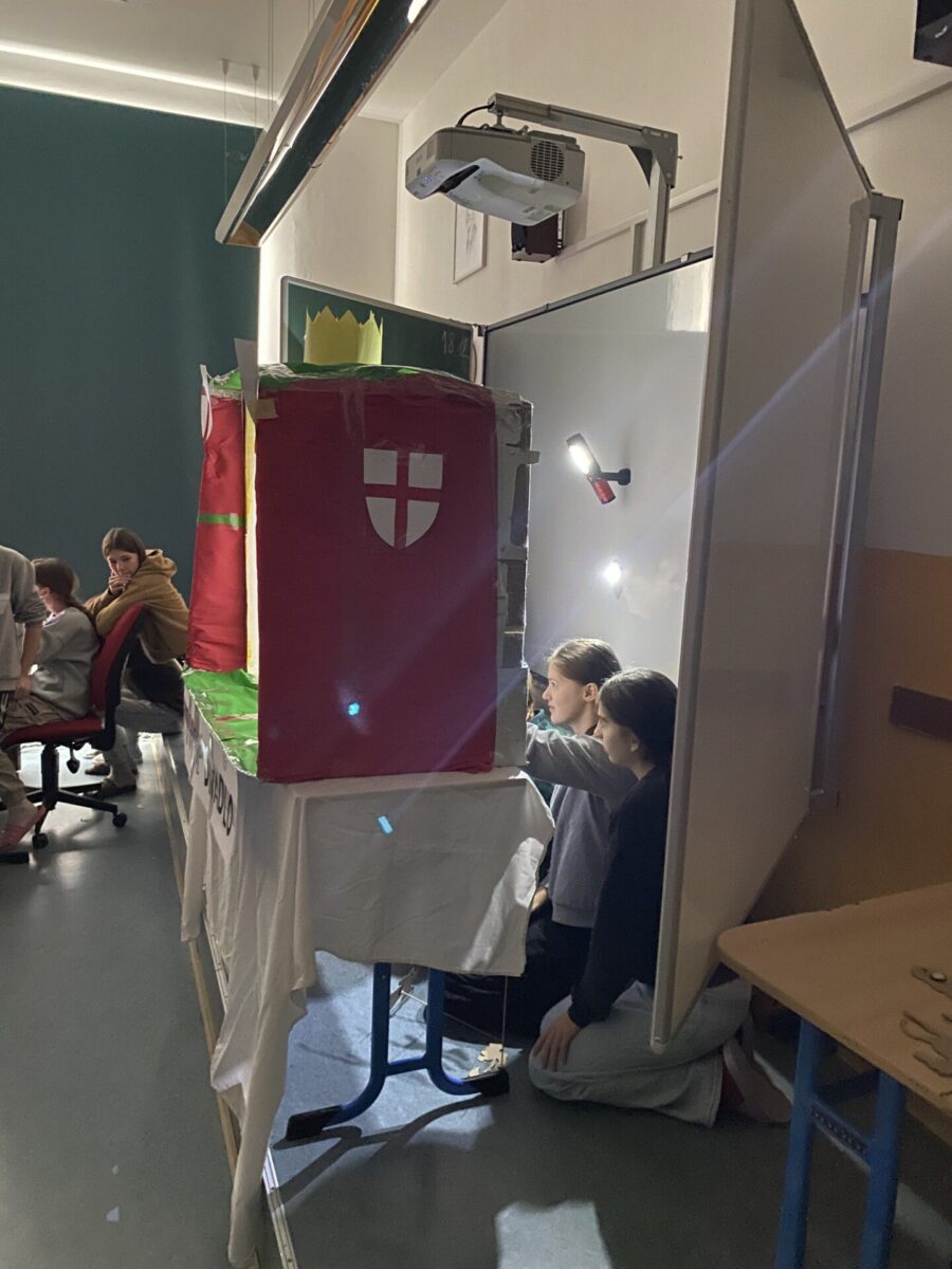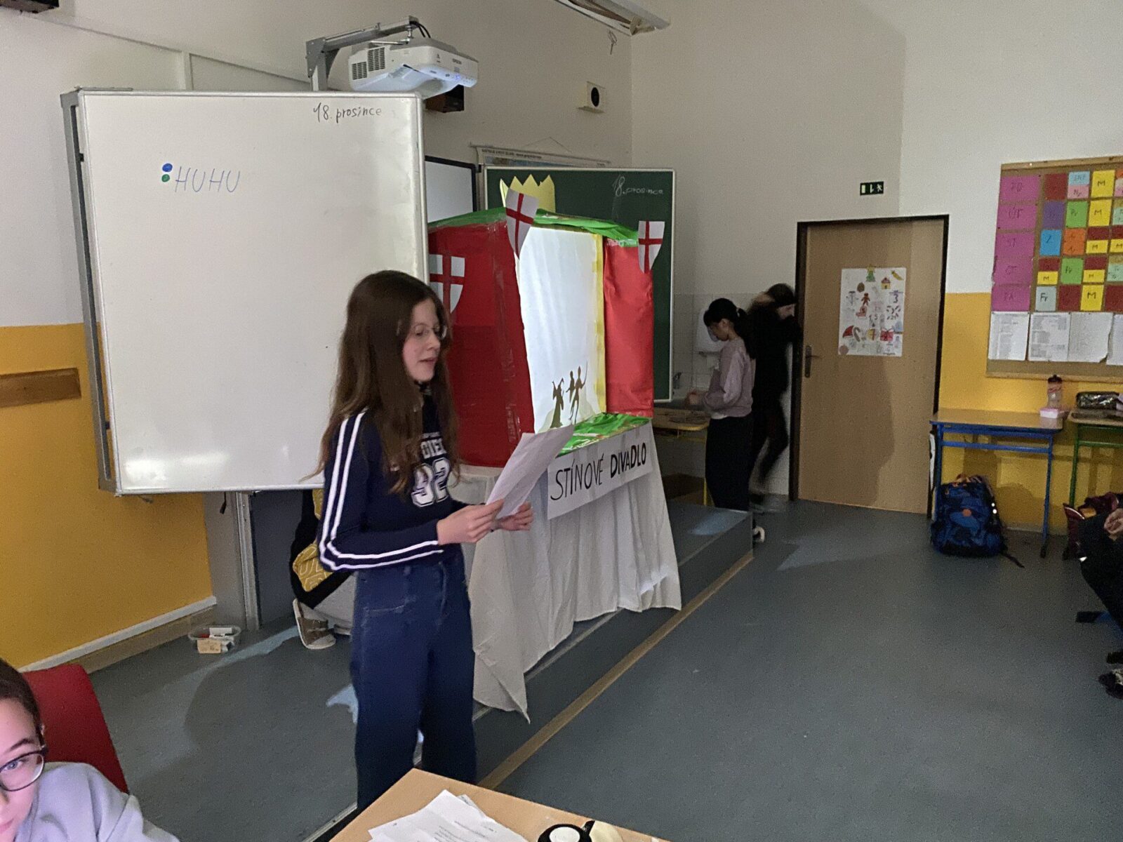 26 února, 2025Příběh o králi Artušovi ze staré Anglie ztvárnili žáci 7.B netradičním způsobem – sehráli stínové divadlo. Samotné prezentaci předcházela časově náročná týmová spolupráce – příprava scénáře, výběr loutek, sestavení scény, technické řešení osvětlení, doprovodné ozvučení příběhu. Příprava postaviček probíhala v hodinách informatiky ve speciálním programu a vyžadovala od žáků preciznost a trpělivost. O samotné zhotovení se postaral nový stroj Thundercut laser 40W, který dokáže vyříznout jakýkoli požadovaný tvar. Samotné provedení příběhu vyžadovalo spolupráci všech účastníků projektu. Poučný příběh zhlédly děti obou stupňů naší školy.