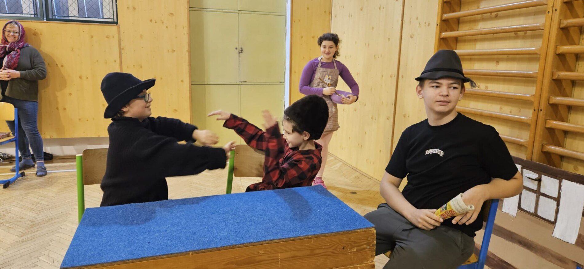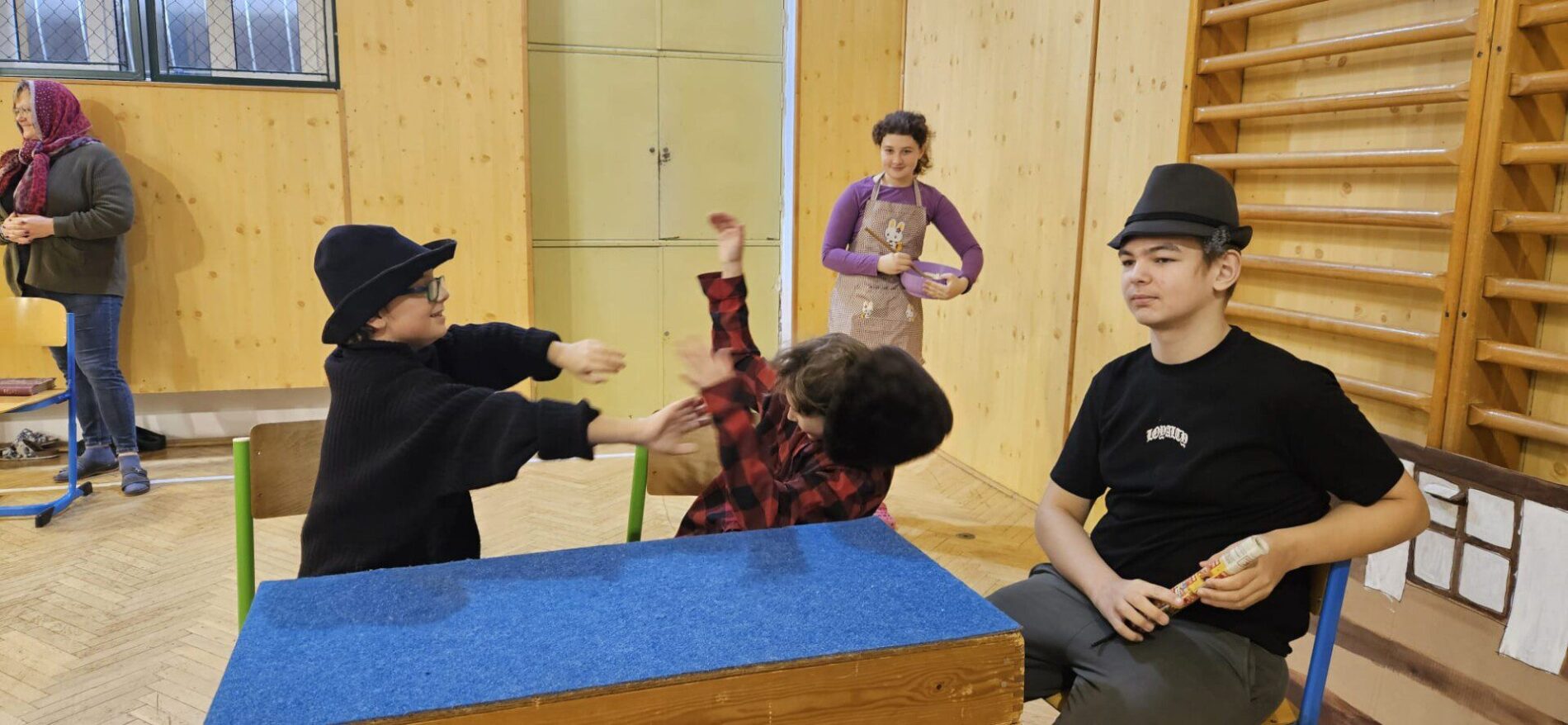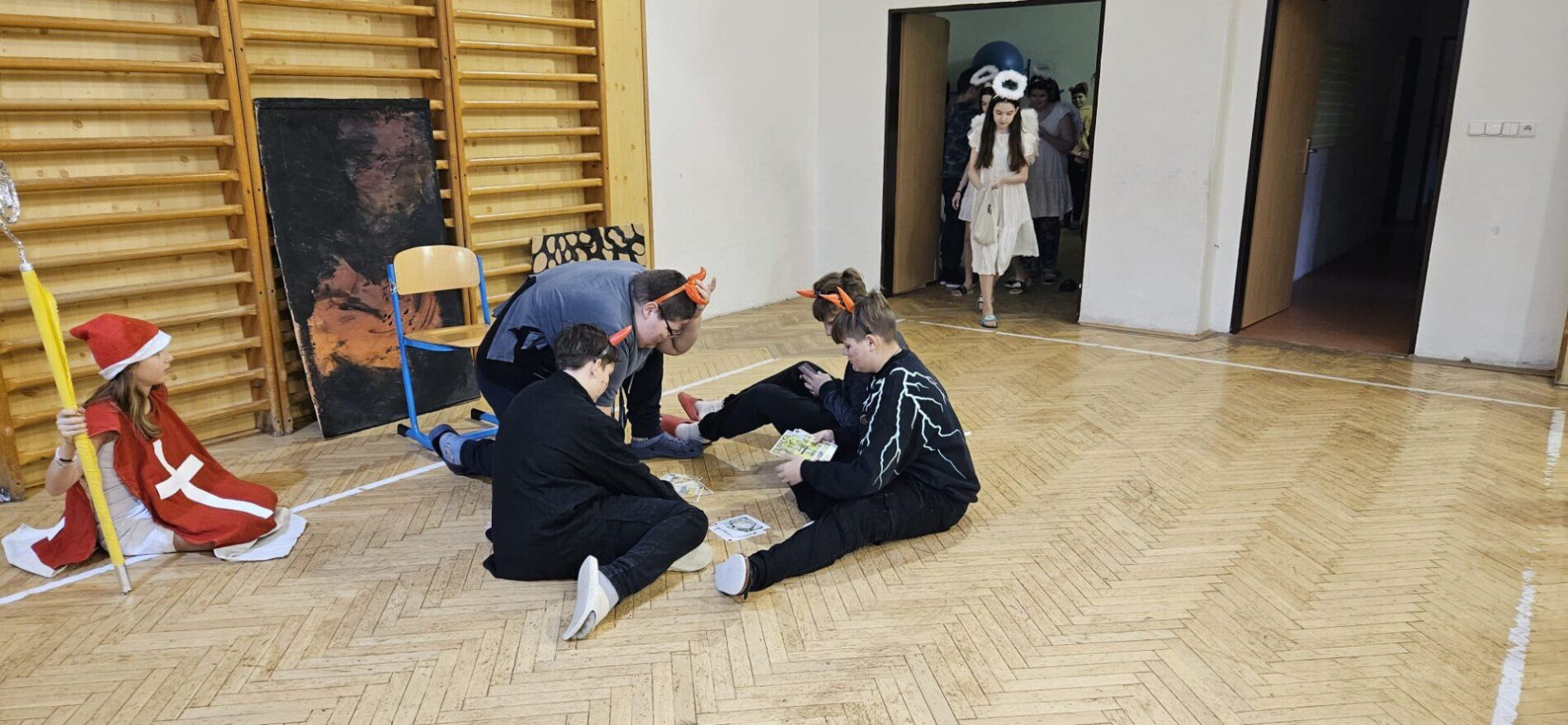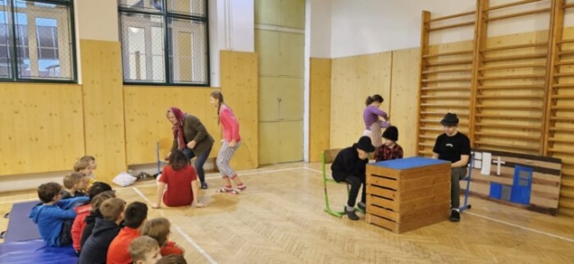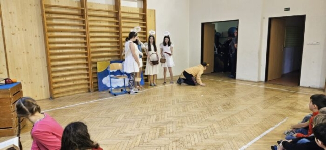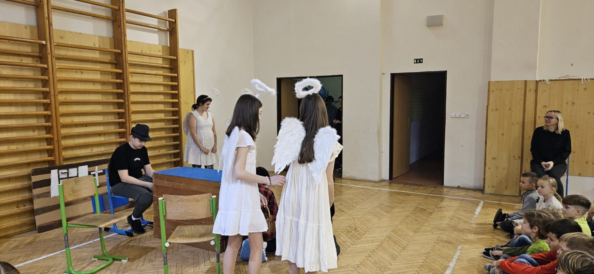Mikuláška, andělé a čerti – jak se dala tahle skupinka dohromady? S novým pojetím příběhu o trojici, která navštěvuje v předvečer 6. prosince děti, zlobivé trestá a hodné obdarovává, přišli žáci 7.A. Vánoční příběh o popletených čertech a hodných andělech zahráli dětem 2. a 3. tříd.