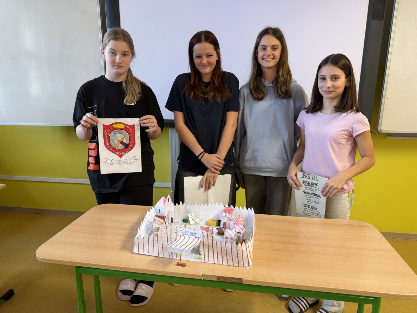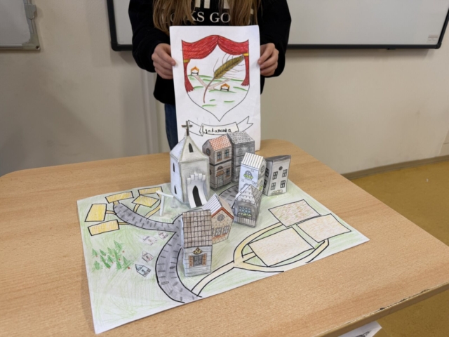 Žáci 7.A a 7.B se ve skupinách ponořili do světa středověku, kde propojili dějepis s výtvarnou výchovou při tvorbě modelů středověkých měst. Každé město mělo vlastní historii i erb. Žáci si přitom upevnili znalosti o plánování a stavbě středověkých měst i o městských právech za vlády Přemysla Otakara II. a Václava II.